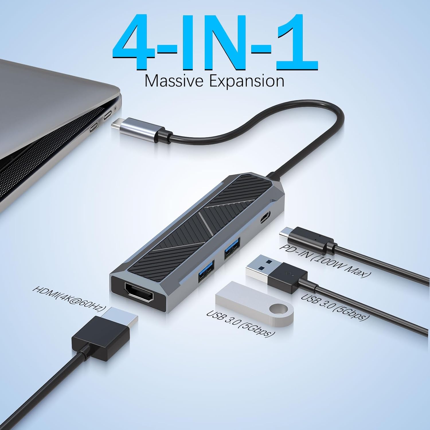 4K डिस्प्ले आउटपुट और हाई-स्पीड डेटा ट्रांसफर के समर्थन के साथ, 4K 60Hz एचडीएमआई स्प्लिटर के साथ 4-इन-1 यूएसबी-सी हब उपयोगकर्ताओं को एक सुव्यवस्थित और व्यवस्थित कार्यक्षेत्र बनाए रखते हुए अपने डिवाइस की पूरी क्षमता को अनलॉक करने में मदद करता है।