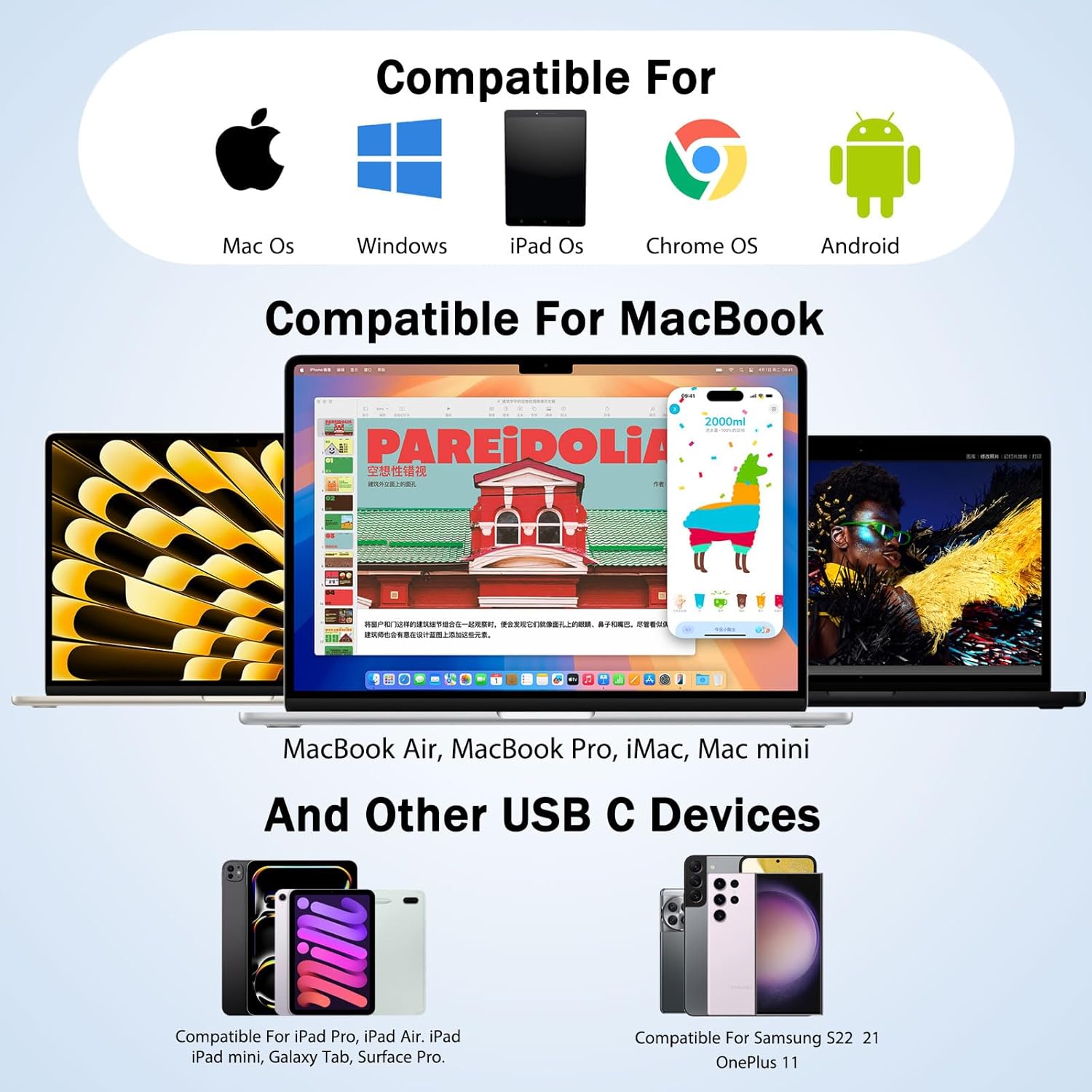 संगतता: यूएसबी-सी लैपटॉप, टैबलेट और स्मार्टफोन