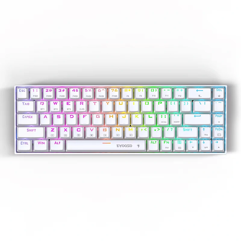 पीसी लैपटॉप गेमर के लिए नवीनतम बिक्री, कम कीमत और उच्च गुणवत्ता वाले 68 कुंजी आरजीबी वायरलेस बीटी 2.4GHz मैकेनिकल गेमिंग कीबोर्ड खरीदने के लिए हमारे कारखाने में आने के लिए आपका स्वागत है। हम आपके साथ सहयोग करने के लिए तत्पर हैं।