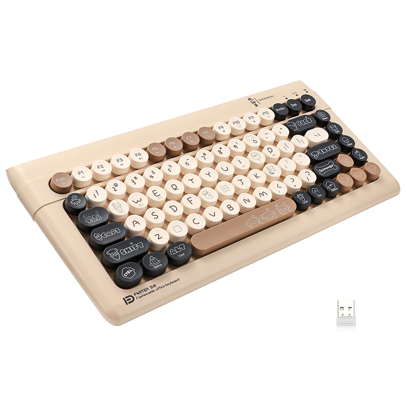 ❤ कॉम्पैक्ट और फैशन ब्लूटूथ कीबोर्ड ▶ इस ब्लूटूथ कीबोर्ड में 84 गोल कुंजियाँ हैं। यह 60% लेआउट वाला कीबोर्ड है, कॉम्पैक्ट और ले जाने में आसान है। फैशन आकार रेट्रो सुरुचिपूर्ण टाइपराइटर आकार, अद्वितीय गोल कीकैप से प्रेरित है। ब्लूटूथ मोड में प्रवेश करने के लिए बस FN + W/E कुंजी दबाएँ।