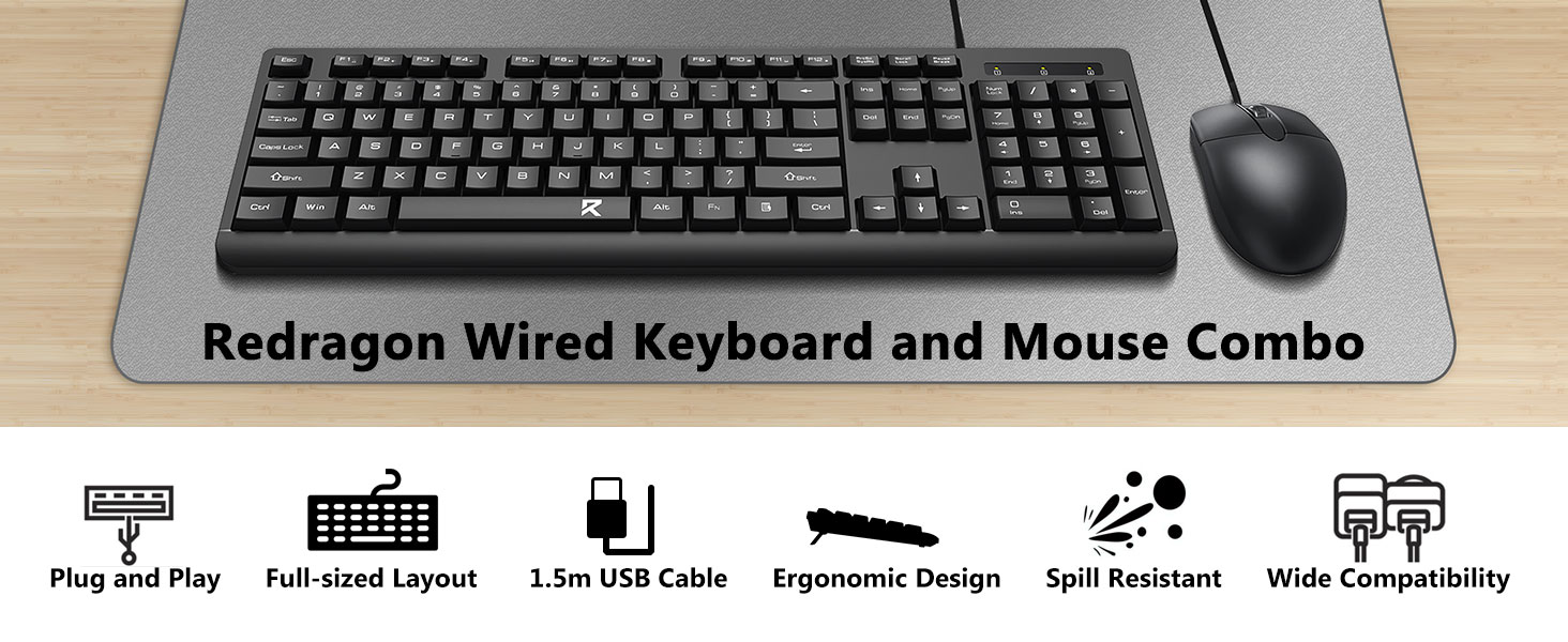 ब्लैक BC7543 वायर्ड कीबोर्ड और माउस कॉम्बो दस्तावेज़ संपादन, प्रोग्रामिंग, ईमेल संचार और कार्यालय प्रबंधन जैसे कार्यों के लिए कुशल टाइपिंग प्रदर्शन का समर्थन करता है।