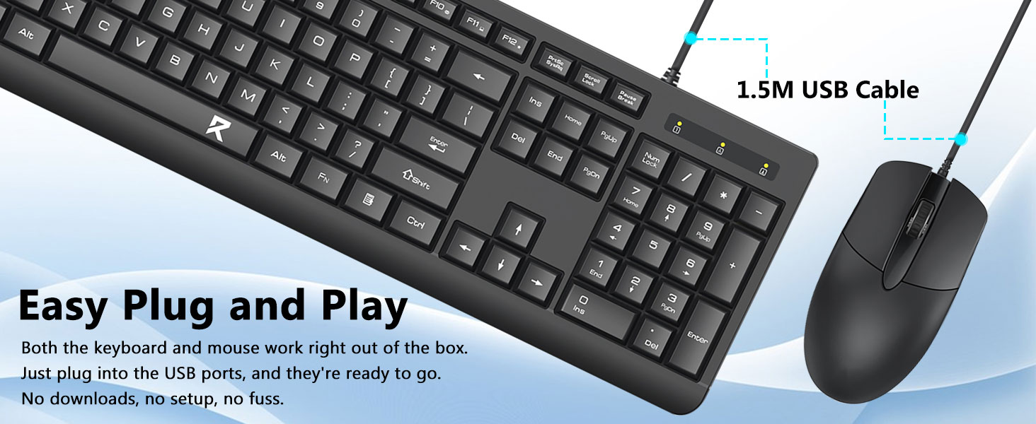 प्लग-एंड-प्ले कार्यक्षमता उपयोगकर्ताओं को अतिरिक्त सॉफ़्टवेयर इंस्टॉल किए बिना कीबोर्ड और माउस को तुरंत कनेक्ट करने की अनुमति देती है।