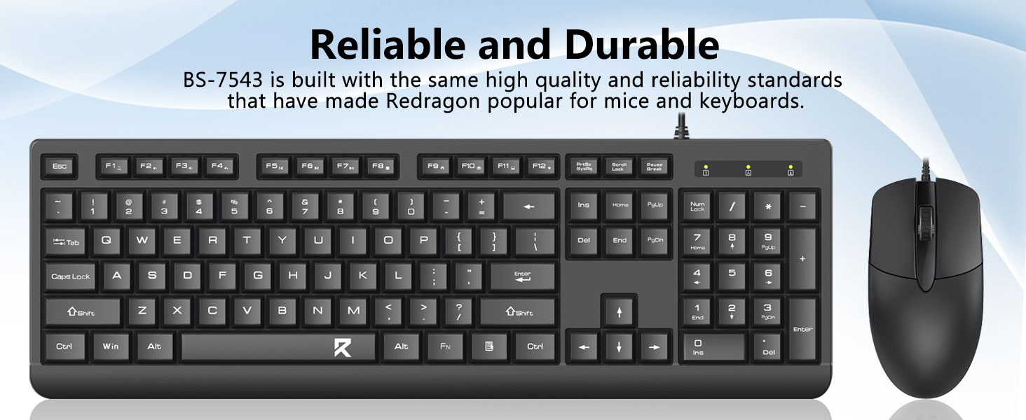 ब्लैक BC7543 वायर्ड कीबोर्ड और माउस कॉम्बो कई डेस्कटॉप और लैपटॉप सिस्टम के साथ संगत है।
