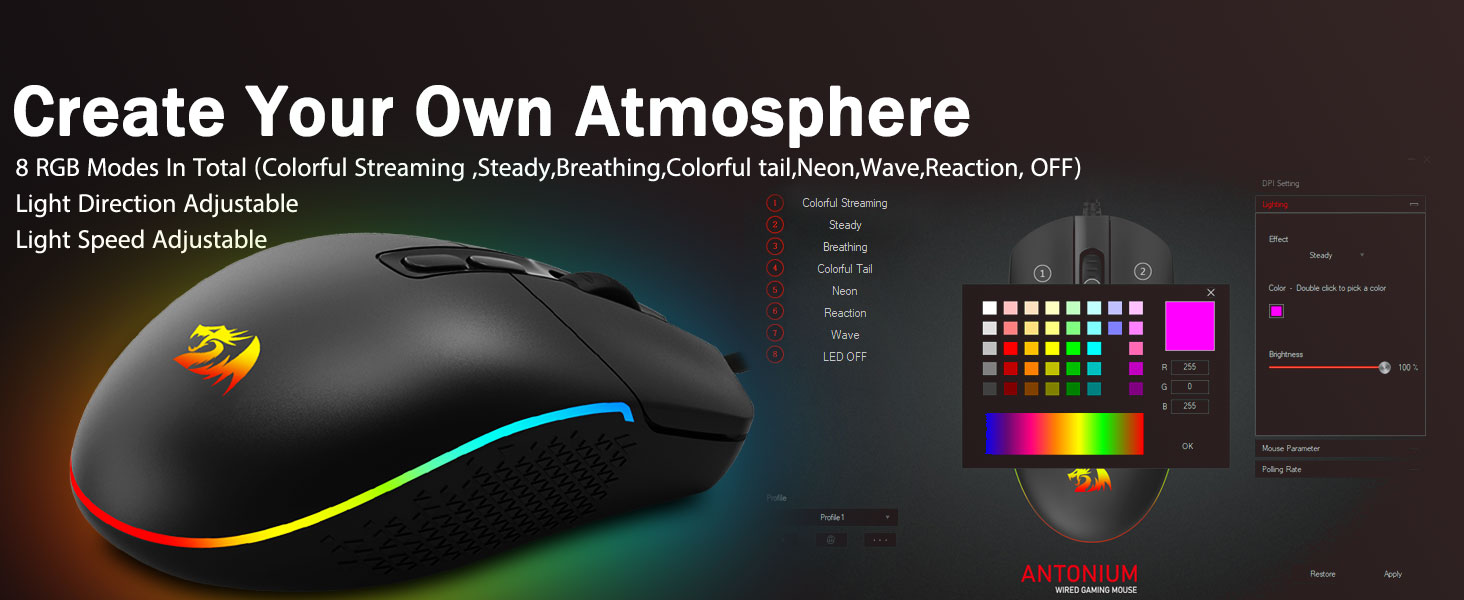 8 अच्छे आरजीबी बैकलिट मोड- बैकलिट चालू करें और अपने गेमिंग युद्धक्षेत्र में कुछ मारें। प्रचारित गतिशील आरजीबी बैकलिट वाइब आपके गेमिंग स्पेस को सजाते समय आपको कभी निराश नहीं करेगा, यह रोशनी के साथ अन्य रेड्रैगन एक्सेसरीज़ के साथ बेहतर होगा।