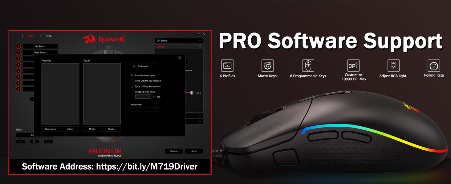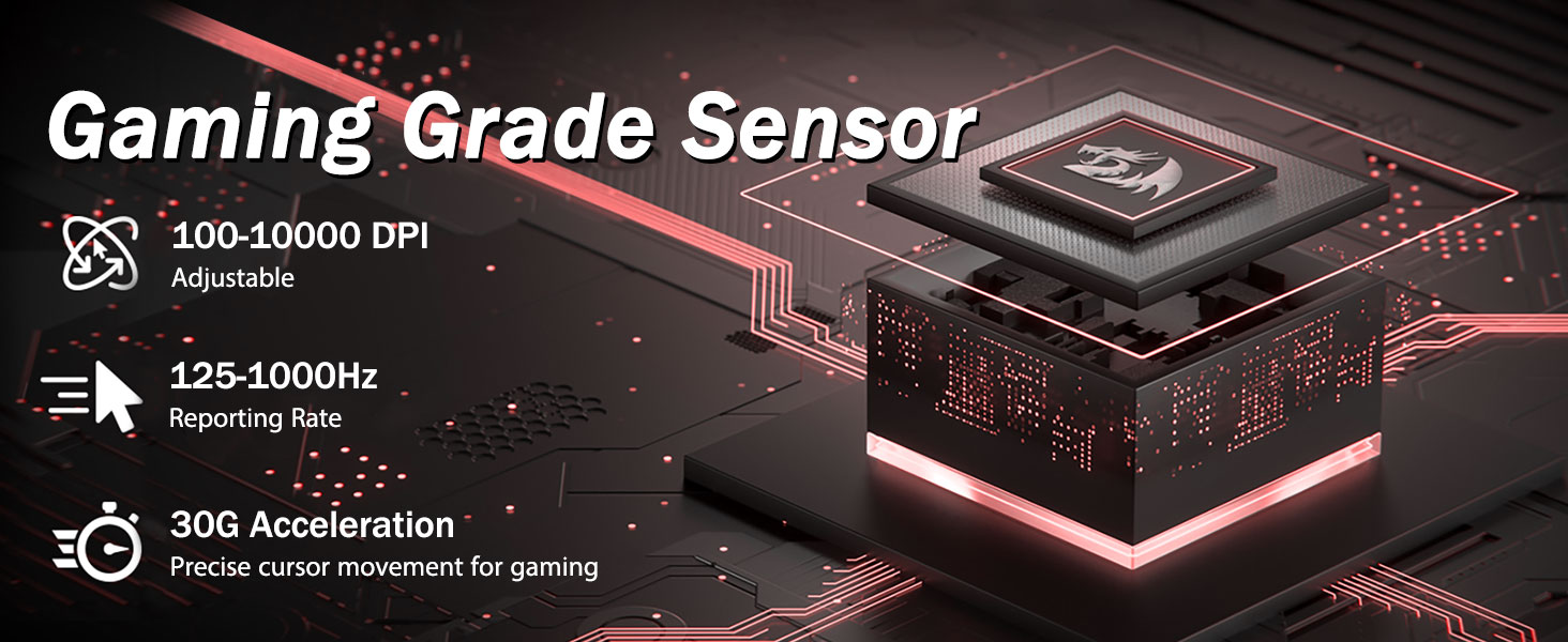 5 समायोज्य डीपीआई स्तर और 4 मतदान दर- M719 माउस उपलब्ध 5 DPI स्तरों के साथ डिज़ाइन किया गया है: DPI 400/800/1600/2400/4000। विभिन्न गेम आवश्यकताओं के बीच स्विच करना आसान है। आपकी सभी आवश्यकताओं को पूरा करने के लिए डीपीआई को सॉफ्टवेयर के माध्यम से ±100 से 100 से 10000 तक स्वतंत्र रूप से समायोजित किया जा सकता है। 4 मतदान दर समायोज्य है: 125Hz/250Hz/500Hz/1000Hz, उच्च मतदान दर सुचारू और तेज़ गति सुनिश्चित करती है।