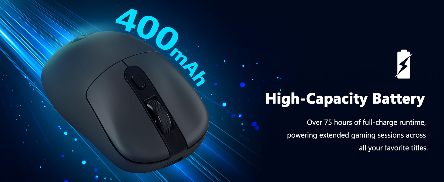 2.4GHz वायरलेस मोड स्थिर और प्रतिक्रियाशील इनपुट सुनिश्चित करता है, अंतराल को कम करता है और तेज़ गति वाली गतिविधियों के दौरान लगातार नियंत्रण बनाए रखता है।