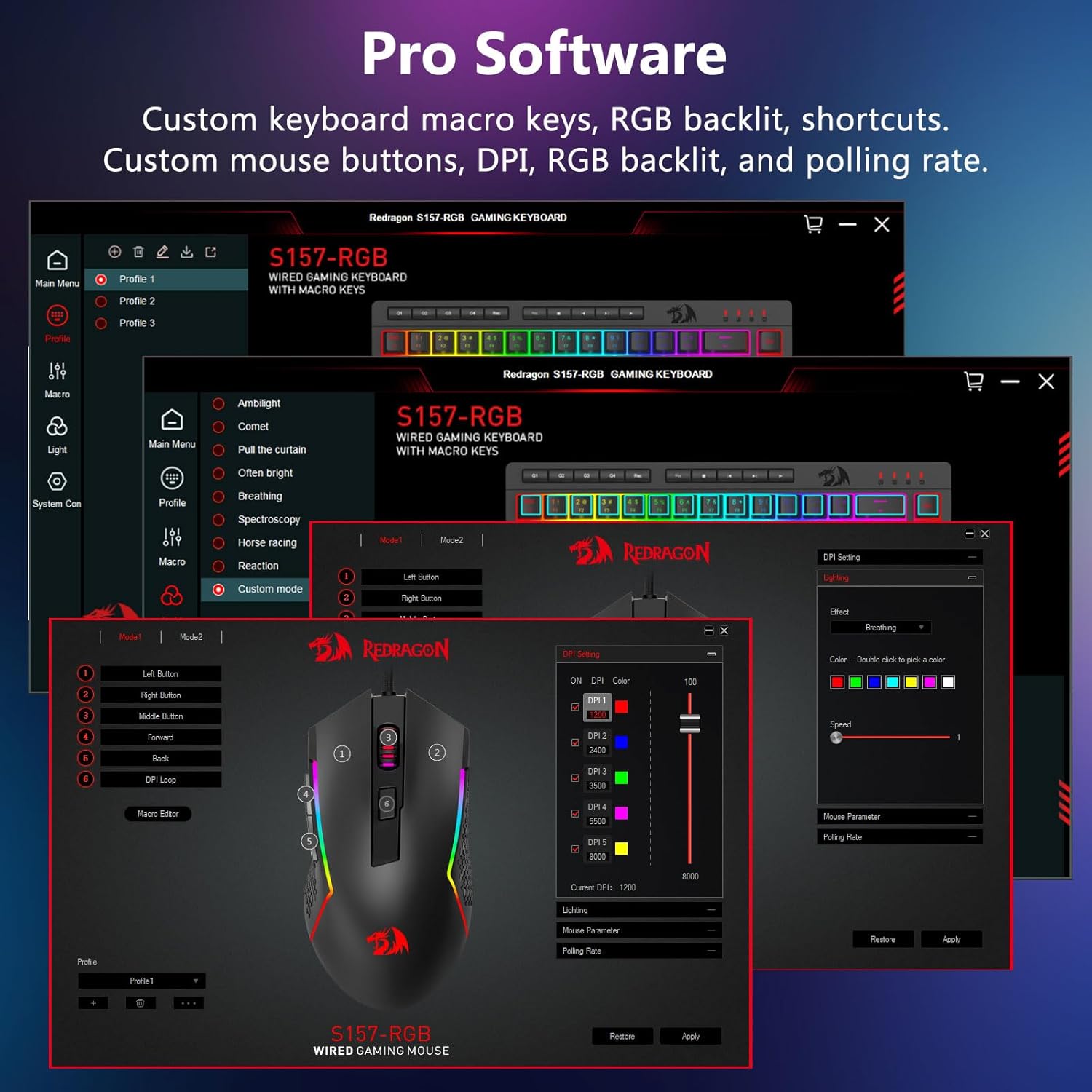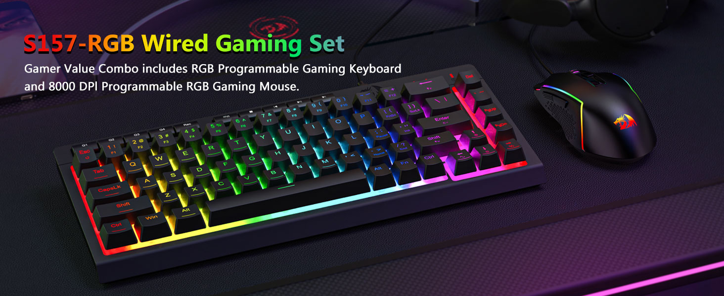 ब्लैक S157 RGB बैकलिट वायर्ड गेमिंग कीबोर्ड और माउस कॉम्बो