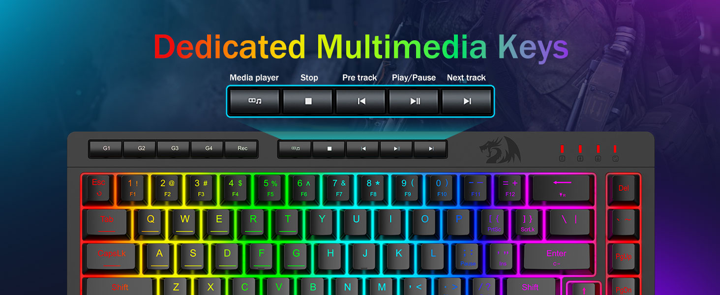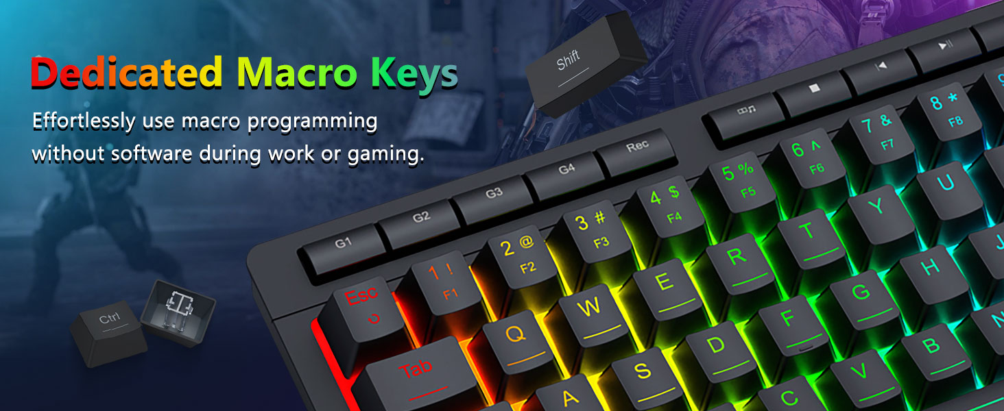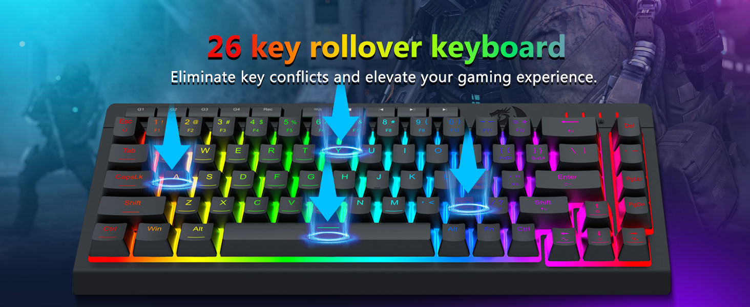 आरजीबी लाइटिंग कम रोशनी की स्थिति में प्रयोज्य को बढ़ाती है, जिससे उपयोगकर्ता एकाग्रता को प्रभावित किए बिना आसानी से चाबियाँ ढूंढ सकते हैं।