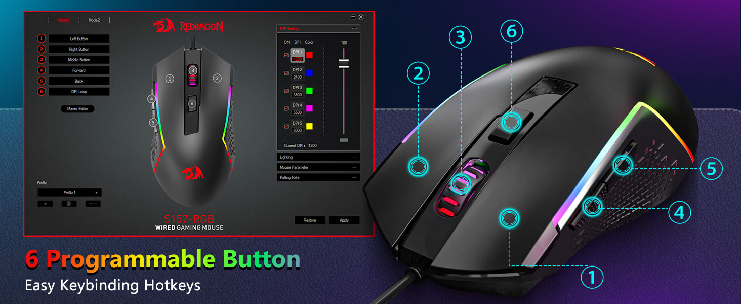 एकीकृत आरजीबी प्रकाश व्यवस्था मंद वातावरण में मुख्य दृश्यता में सुधार करती है। प्रकाश प्रणाली कई मोड प्रदान करती है, जिससे उपयोगकर्ता अपनी पसंद के अनुसार चमक और प्रभाव को समायोजित कर सकते हैं।