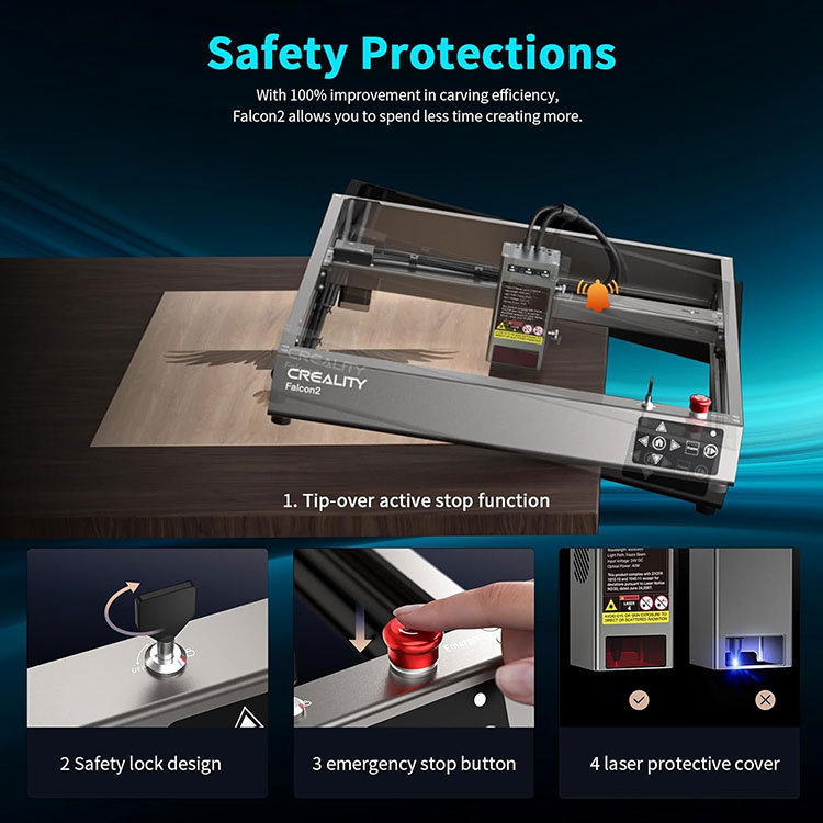 · अल्ट्रा-फास्ट लेजर एनग्रेवर मशीन:Creality Falcon2 की अधिकतम प्रसंस्करण गति 25000 मिमी/मिनट उत्पादकता तक पहुंच सकती है। 2 गुना तेज उत्कीर्णन गति के साथ, आप अपनी उत्कीर्णन कलाकृति को जल्दी और अच्छी तरह से पूरा कर सकते हैं।