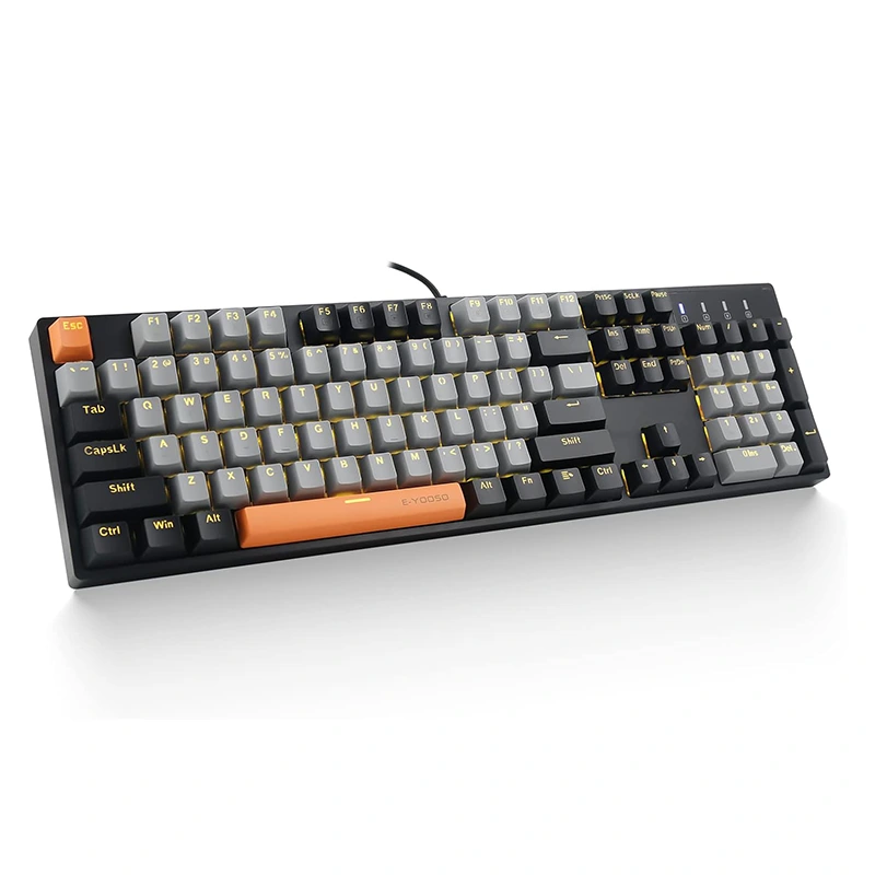 E-YOOSO Z-14 104 कुंजी फुल-साइज़ सॉलिड येलो बैकलिट मैकेनिकल गेमिंग कीबोर्ड रेड स्विच के साथ। अच्छी बनावट, किफायती कीमत, गेम खेल सकते हैं और एक साथ काम कर सकते हैं