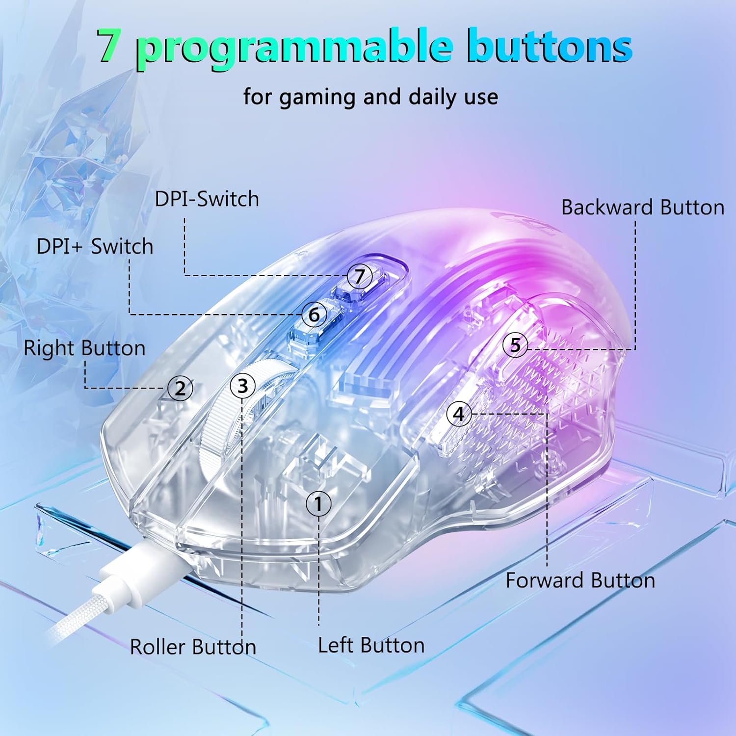 समायोज्य डीपीआई स्तर उपयोगकर्ता की पसंद के आधार पर अनुकूलन की अनुमति देता है, जो इसे विभिन्न गेम शैलियों और वर्कफ़्लो के लिए उपयुक्त बनाता है।