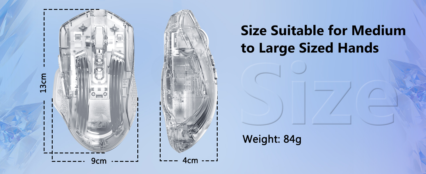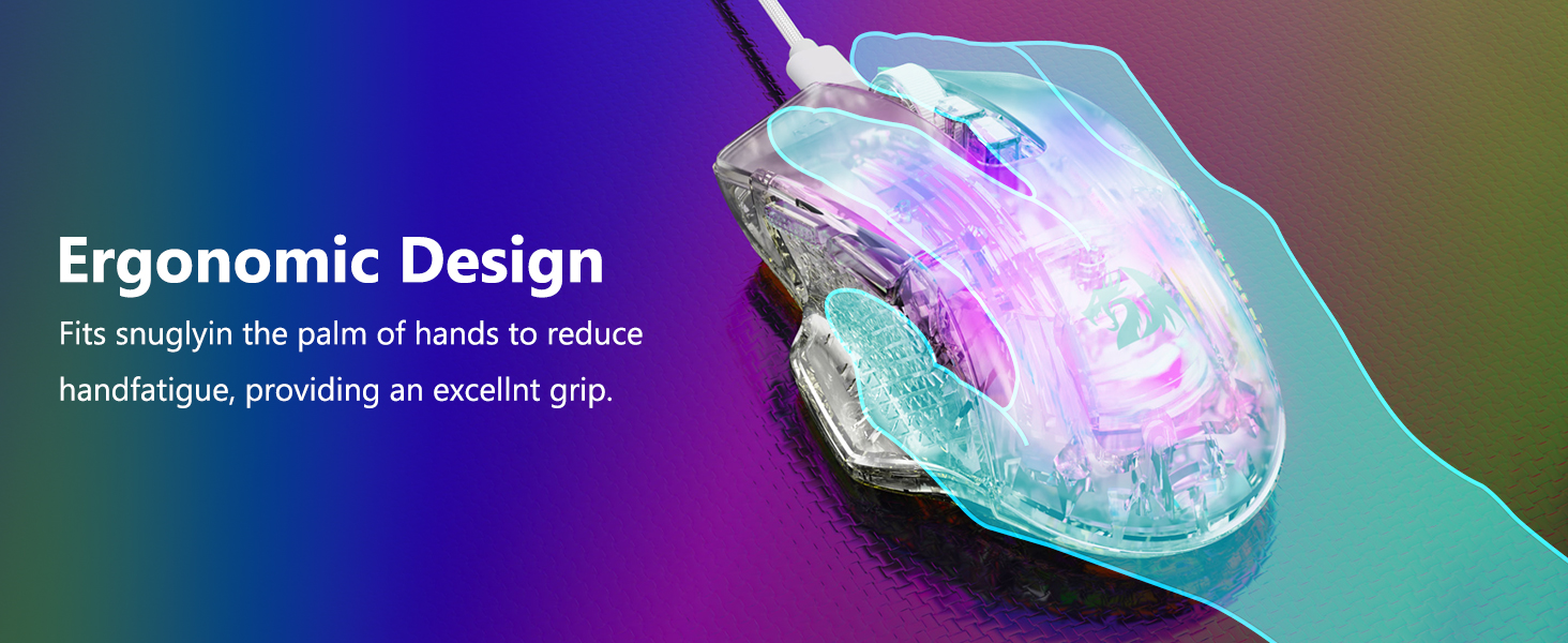 माउस को हाथ में स्वाभाविक रूप से फिट होने के लिए आकार दिया गया है, जो अत्यधिक तनाव के बिना विस्तारित उपयोग का समर्थन करता है। इसकी संरचना हथेली, पंजे और उंगलियों की पकड़ सहित आरामदायक पकड़ शैलियों की अनुमति देती है।