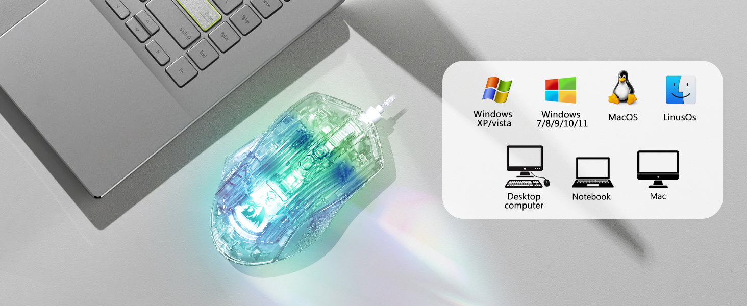 माउस विभिन्न प्रकार के उपकरणों के साथ संगत है, जिनमें शामिल हैं: