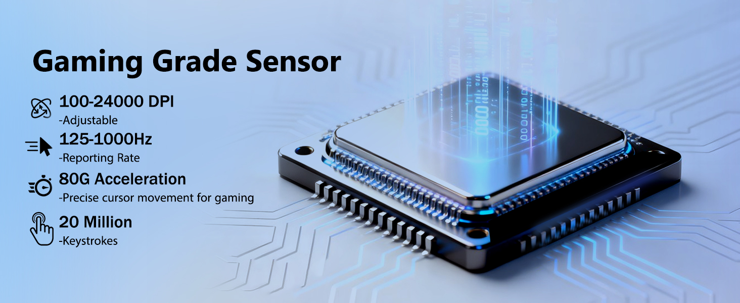 माउस एक उन्नत ऑप्टिकल सेंसर से लैस है जो 24,000 डीपीआई तक पहुंचने में सक्षम है। यह उपयोगकर्ताओं को गेम में सटीक लक्ष्यीकरण से लेकर बड़ी स्क्रीन पर तेज़ कर्सर गति तक, विभिन्न परिदृश्यों के अनुसार संवेदनशीलता को समायोजित करने की अनुमति देता है।